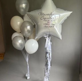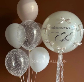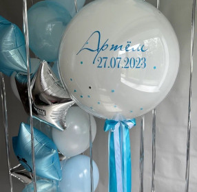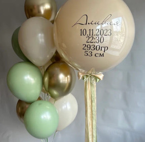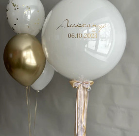 Стеклянный шар с индивидуальной надписью + связка из 10 шаров (4 золото хром, 6 классика)